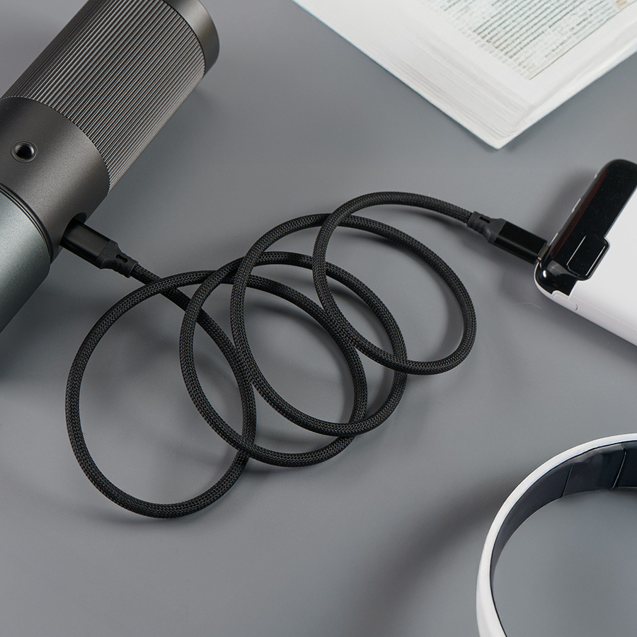 Данный кабель оснащен технологией магнитного самоскручивания, который позволяет его максимально удобно хранить и перевозить. Благодаря встроенным в оплетку магнитам с плотностью потока 650Гс кабель легко и аккуратно скручивается, оставаясь компактным и не путаясь. Прочная нейлоновая оплетка обеспечивает долговечность и устойчивость к износу, а длина в 1м делает его удобным для использования дома, в машине или офисе.Кабель поддерживает высокую мощность зарядки до 100Вт по современным протоколам быстрой зарядки PD и QC. Этой мощности будет достаточно даже для зарядки ноутбука. А скорость передачи данных в 480Мб с гарантирует быструю передачу файлов без задержек. Технические характеристики:Материал оплетки: нейлонТип коннектора 1: Type-CТип коннектора 2: Type-CПлотность магнитного потока: 650ГсДлина кабеля: 100смТолщина кабеля (диаметр): Ø4.1ммМаксимальное номинальное напряжение: 20ВМаксимальный номинальный ток: 5АМаксимальная номинальная мощность: 100ВтПротоколы быстрой зарядки: Power Delivery (PD), Quick Charge (QC) Максимальная скорость передачи данных: 480Мбит с Совместимые устройства: мобильный телефон, персональный компьютер, ноутбук -