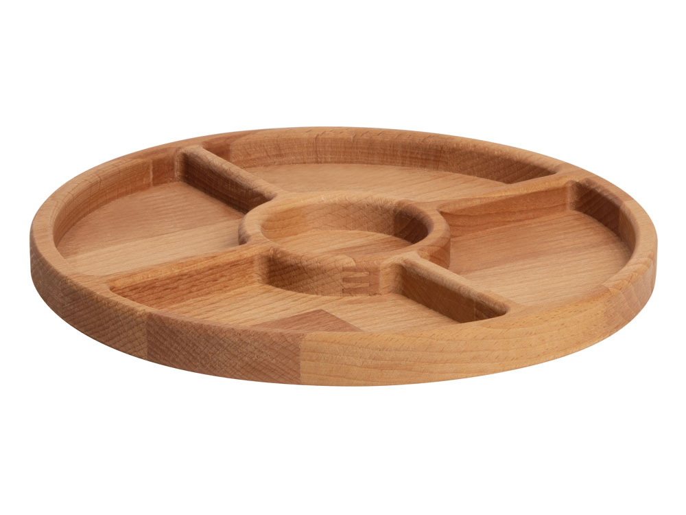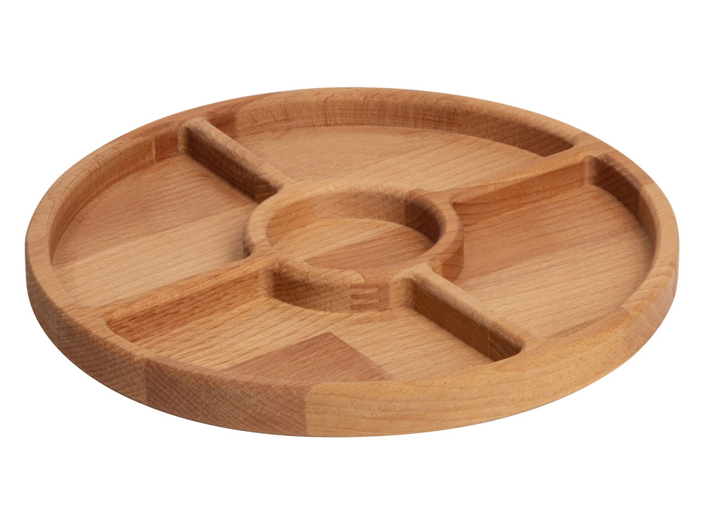 Менажница из натурального бука предназначена для красивой подачи закусок. В центр можно установить соусницу (не входит в комплект).