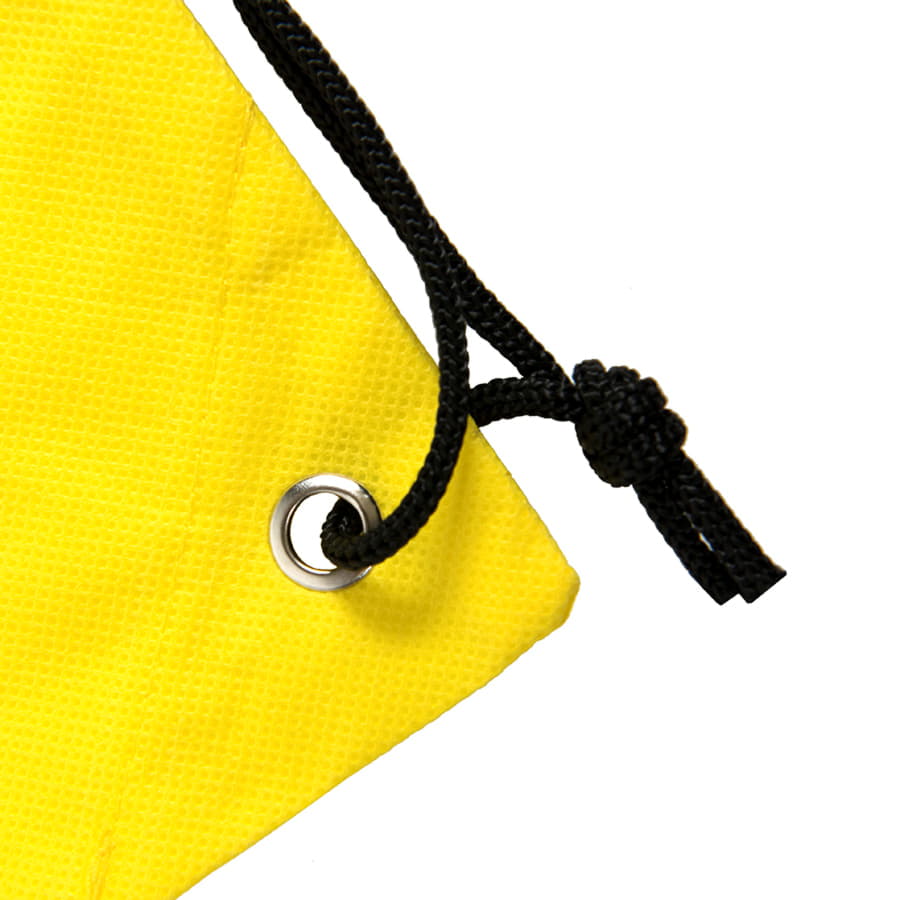 Цвет, близкий к Pantone Yellow C Легкий рюкзак из нетканого материала с плотным шнуром поможет удовлетворить любые промо-потребности рынка. Укрепленные углы с металлическими люверсами придают невесомому рюкзаку дополнительную прочность. -
