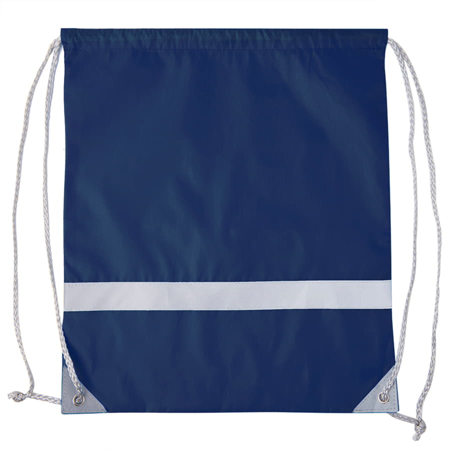 Просто и безопасно! Рюкзак-мешок RAY из полиэстера 210Dсо светоотражающей полосой спереди, светоотражающими уголками,усиленными металлическими люверсамиЛегко и просто затягивается по верхней части серыми шнурами.Тёмно-синий цвет близкий к Pantone 289C -