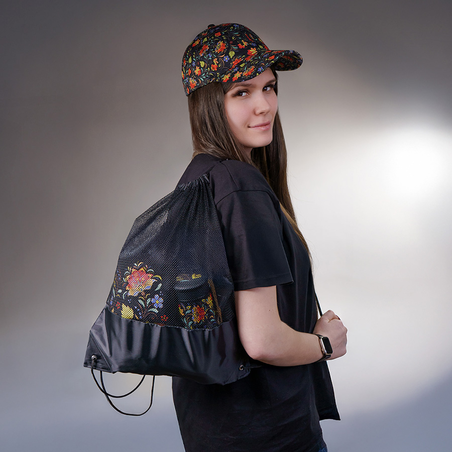 Рюкзак-мешок Mesh из полиэстера 210D c сеткой.C чёрными уголками и шнурами.Легко и просто затягивается по верхней части чёрными шнурами. -
