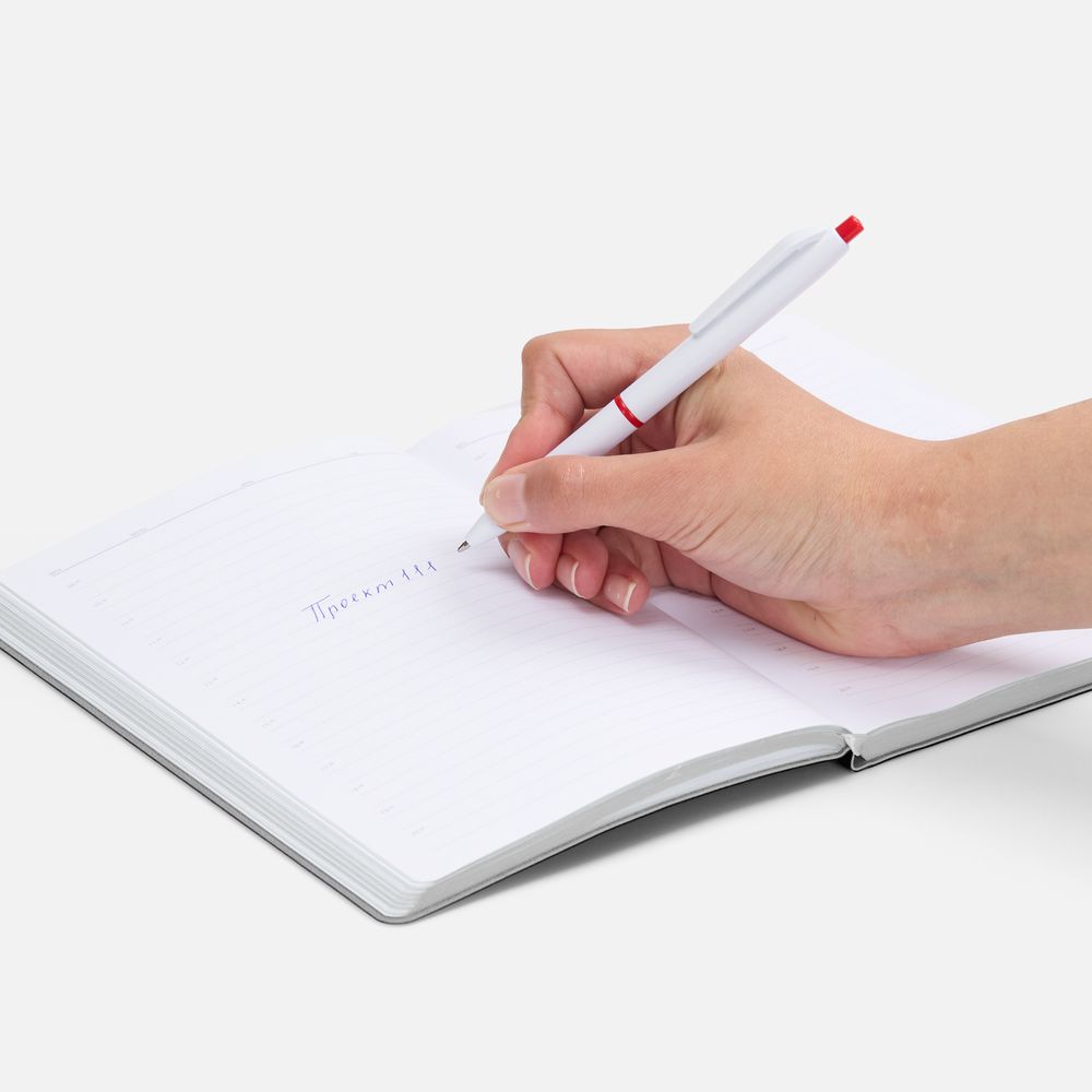 Классическая модель ручки с акцентными деталями: кольцом и кнопкой, которые дополнят логотип компании.