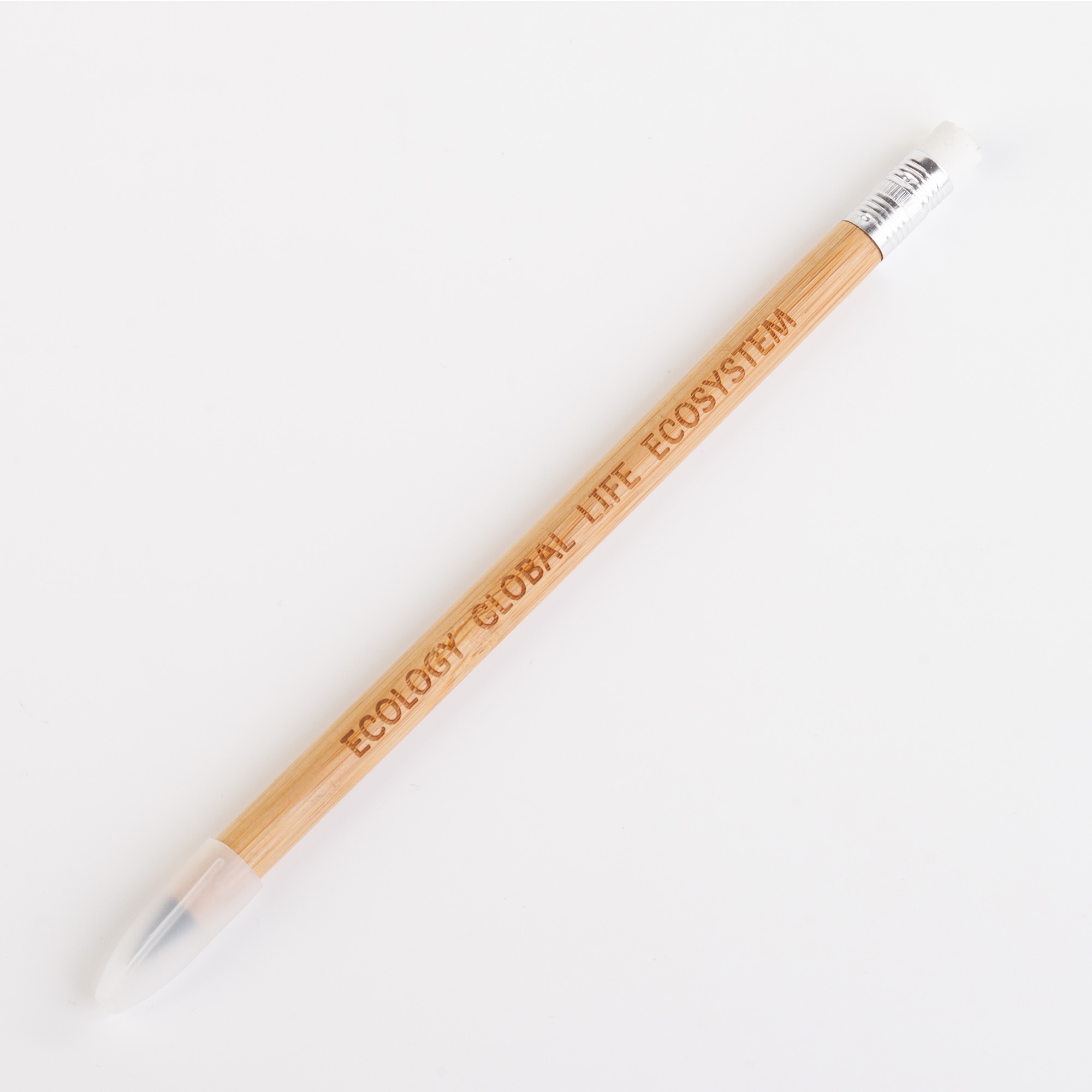 Экоответственный карандаш с защитным колпачком и ластиком. Пищущий элемент выполнен из сверхпрочного графита, длины письма которого хватит до 30 000 метров. -