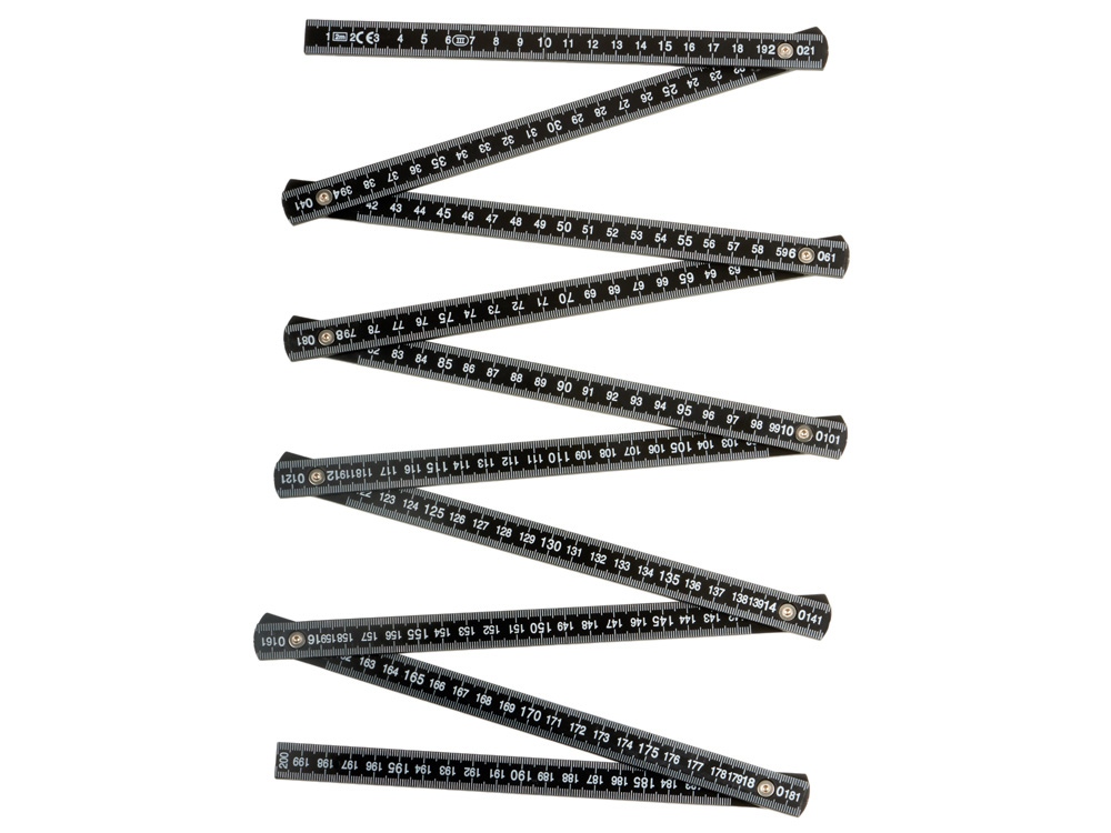 Складная линейка длиной 2 м. Двусторонняя линейка со шкалой на 200 см с одной стороны и 79 дюймов с другой. Линейка состоит из нескольких складных частей. АБС-пластик. -