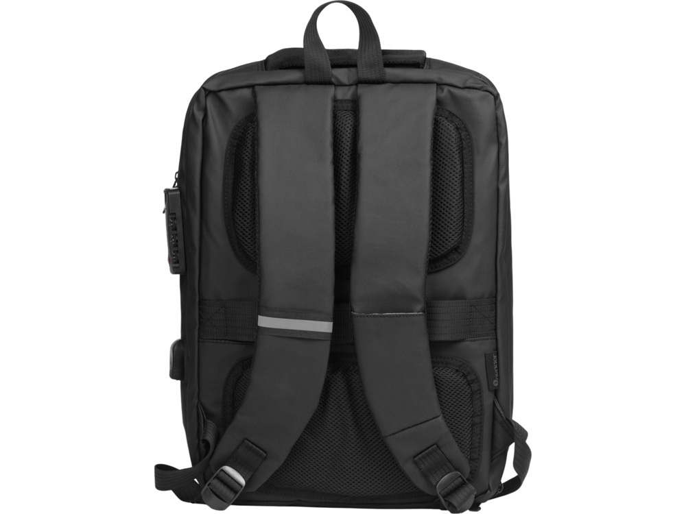 Водостойкий бизнес-рюкзак с пластиковой панелью спереди выглядит стильно и обеспечивает бережное хранение ваших личных вещей. Подходит для передвижений по городу и деловых поездок. 2 вместительных отделения позволяют разместить все необходимое: большое отделение для одежды с фиксирующими ремнями и органайзером, меньшее отделение с карманами для ноутбука и планшета и сетчатым органайзером. Несанкционированный доступ к содержимому вашего рюкзака будет затруднён благодаря кодовому замку и прочной пластиковой панели спереди. В рюкзаке предусмотрено много дополнительных удобств для использования:
