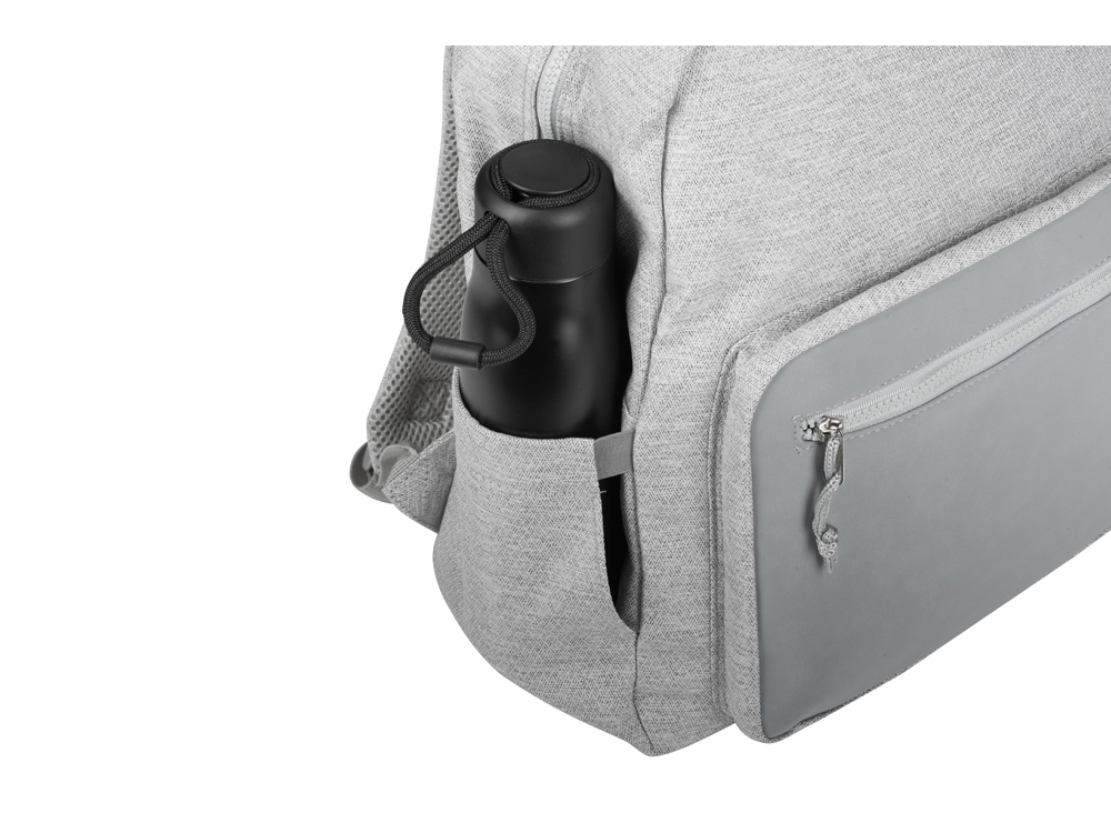 Легкий и вместительный рюкзак из плотной текстурной ткани с отделкой из экокожи удобен для путешествий и передвижения по городу. Внутри расположен карман для ноутбука, снаружи карман на молнии. Боковой растягивающийся карман на эластичной ленте подходит для зонтов и бутылок разного диаметра. Лямки регулируются по длине. -