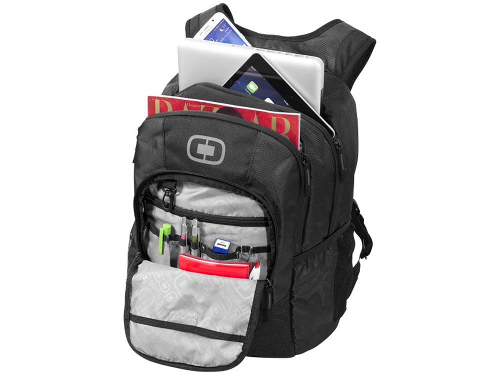 Рюкзак Logan для ноутбука 15.6. Рюкзак для ноутбука 15,6 из прочного материала с мягким отделением для планшета. Просторное и большое второе отделение, передний карман с органайзером и карабином для ключей. Уплотненная спинка с влагоотталкивающей сеткой и уплотненные ремни на плечи. 600d Полиэстер добби. -