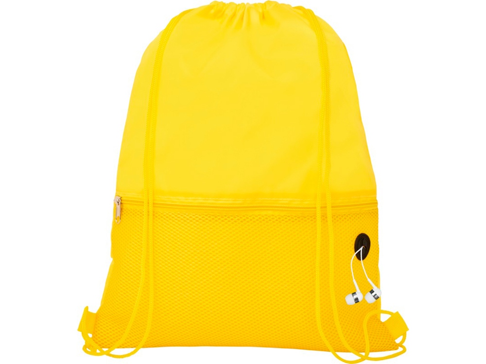 Рюкзак со шнурком и главным отделением на шнуровке в цвет изделия. Имеет один передний сетчатый карман на молнии и порт для наушников. Прочность до 5 кг. -