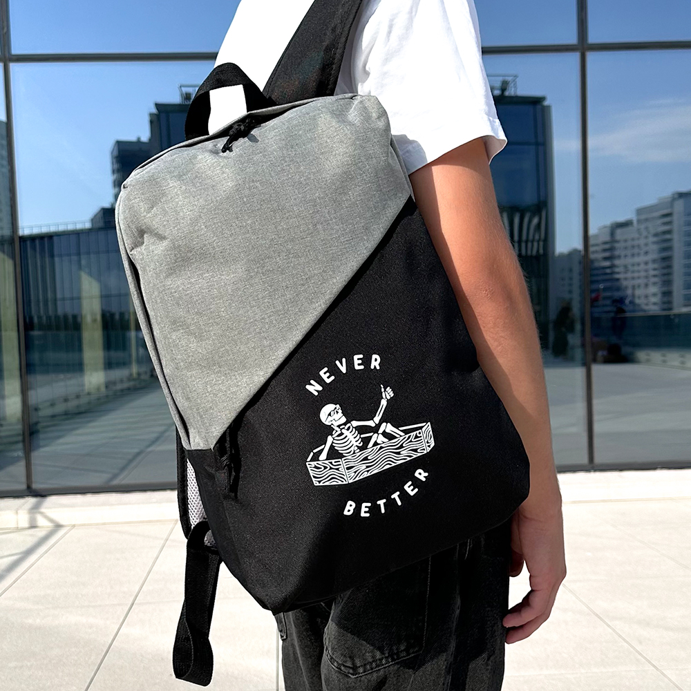 Компактный и лаконичный городской рюкзак QUIZ. Его особенности - размер и акцентный диагональный дизайн рюкзака для максимального комфорта дополнен эргономичными уплотнёнными элементами с 3D-сеткой на задней стенке. Одно большое отделение закрывается скрытой молнией, что предотращает попадание внутрь дождя и снега. Внутри большой уплотненный карман для ноутбука 15,6 дюймов с клапаном-резинкой на велькро и карман-органайзер для мелких аксессуаров. На передней стенке оъёмный диагональный карман на скрытой молнии. 3D-сетка на подкладке плечевых ремней и накладках задней стенки предотвращает скольжение и обеспечивает дополнительную вентиляцию и комфорт при контакте с кожей и одеждой. Двойное уплотнение анатомических накладок на задней стенке распределяет вес рюкзака и снижает нагрузку на позвоночник. Размер: 43*28*10 см Материал: Полиэстер с водонепроницаемой пропиткой Плотность: 300D Цвет по PANTONE® (максимально приближен): 428c / black Рекомендуемая максимальная нагрузка: не более 10 кг. Вместимость: 10 л. Вес: 0.45 кг Возможно добавление пуллеров (арт. 4093) в количестве 3 шт в семи вариантах цвета и нанесение на них УФ печати Возможна кастомизация с помощью ремувки (арт. 4094, 4097) в восьми вариантах цвета и нанесение на неё термопечати Возможна установка шильды (арт. 4090, 4091, 4092) на передний карман и нанесение на неё гравировки / тампопечати- Виды нанесений: Термотрансфер DTF, Шелкотрансфер, Установка Шильды