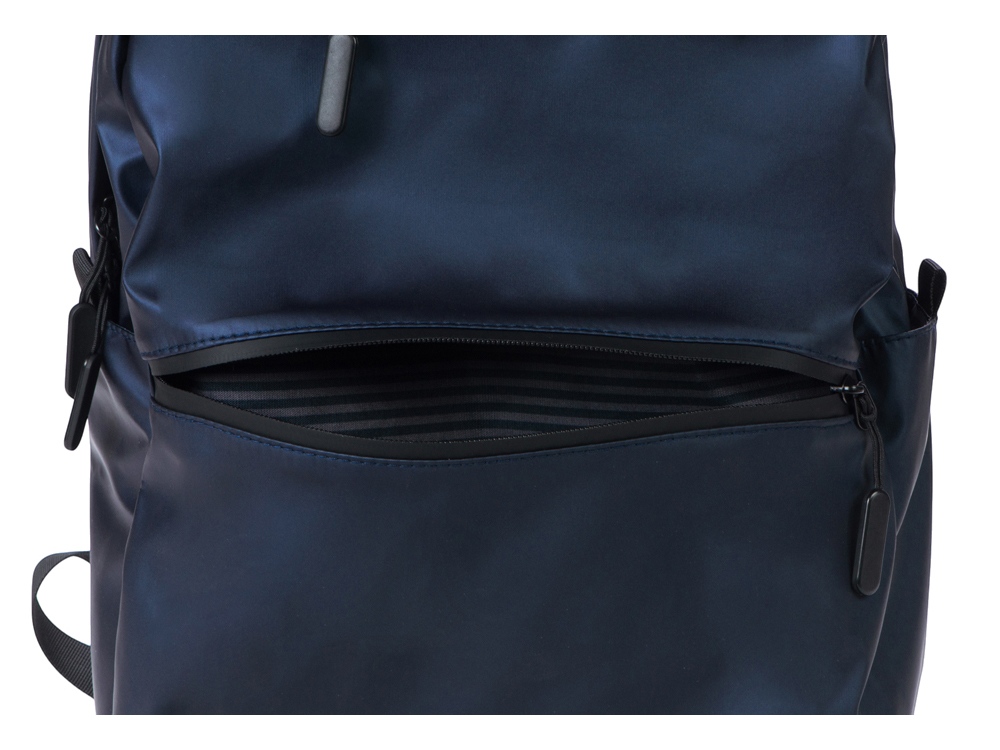 Элегантный легкий городской рюкзак из мягкого приятного на ощупь материала можно использовать для передвижений по городу, а так же в поездках, для чего на спинке предусмотрен ремень для крепления на ручку чемодана. Для удобства и компактного хранения содержимого снаружи расположены 2 передних кармана на молниях и 2 боковых кармана. Внутри уплотненный карман для ноутбука. Стильная подкладка в полоску в тон цвета внешнего материала делает рюкзак модным аксессуаром. Благодаря водостойкому материалу и молниям содержимое рюкзака не намокнет под дождем. Лямки регулируются по длине. -