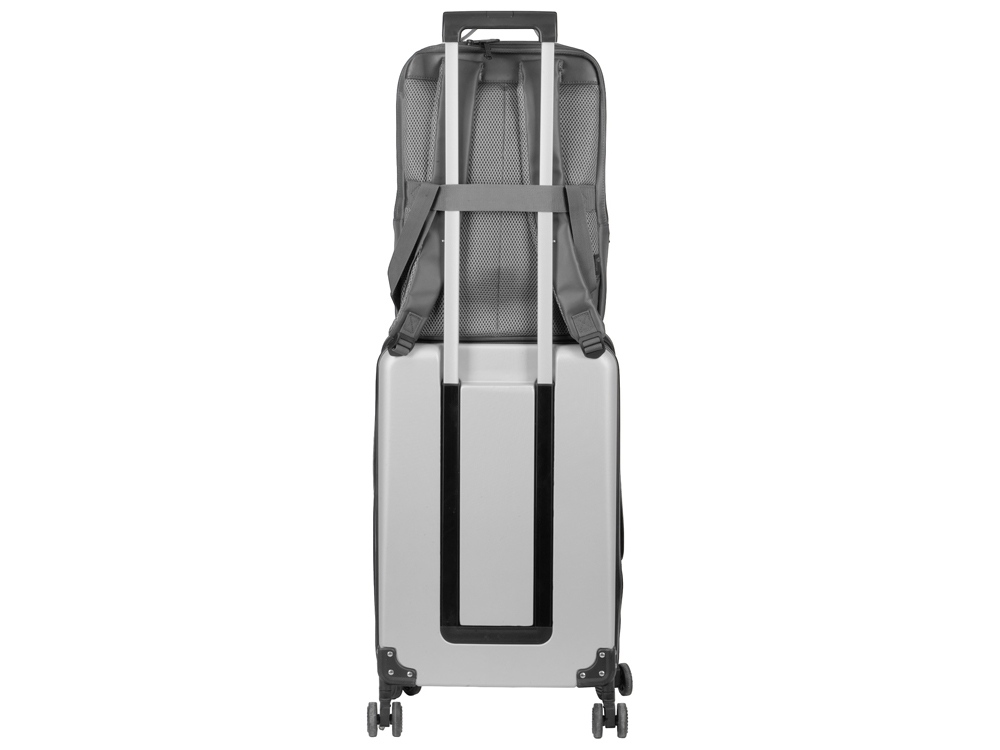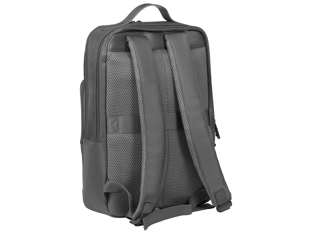 Бизнес-рюкзак из плотной ткани, хорошо держащий форму, имеет строгий и стильный дизайн. Внутри 2 отделения - для ноутбука и для одежды с органайзером и внутренним карманом на молнии. Снаружи расположено большое отделение на молнии. Рюкзак удобен для поездок, при этом компактен и оснащен ремнем для крепления к чемодану. В комплекте нетканый мешок для хранения и съемный металлический шильд для нанесения вашего логотипа. -