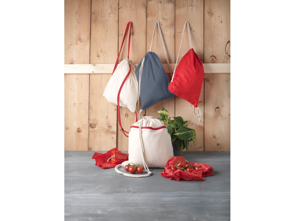Большое основное отделение затягивается хлопковым шнурком. Прочность до 5 кг. -