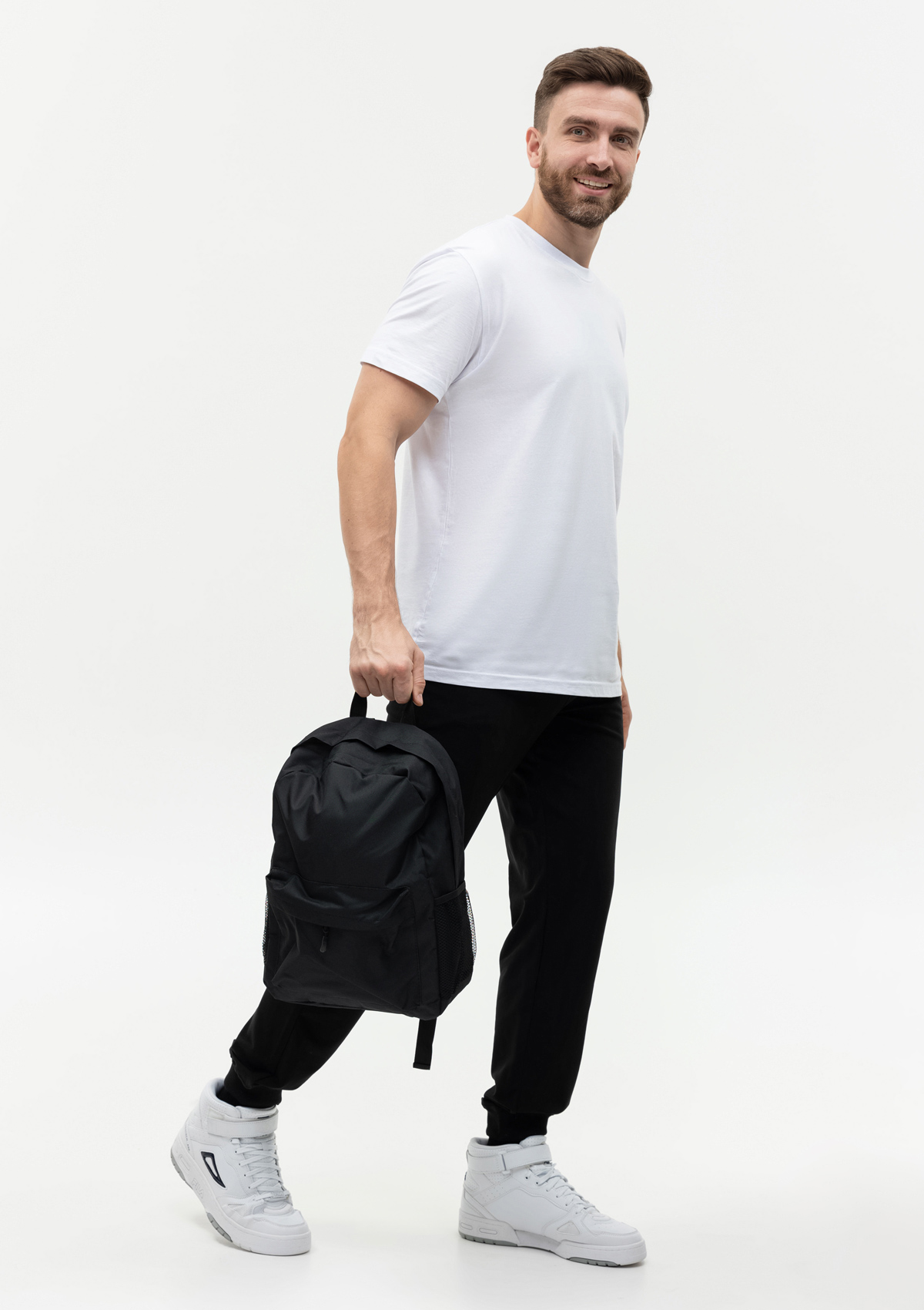 Рюкзак выполнен из плотной матовой ткани на основе полиэстера, которая не требует специального ухода. Модель имеет вместительное основное отделение, в него можно положить документы, ноутбук, зонт и прочие необходимые вещи.