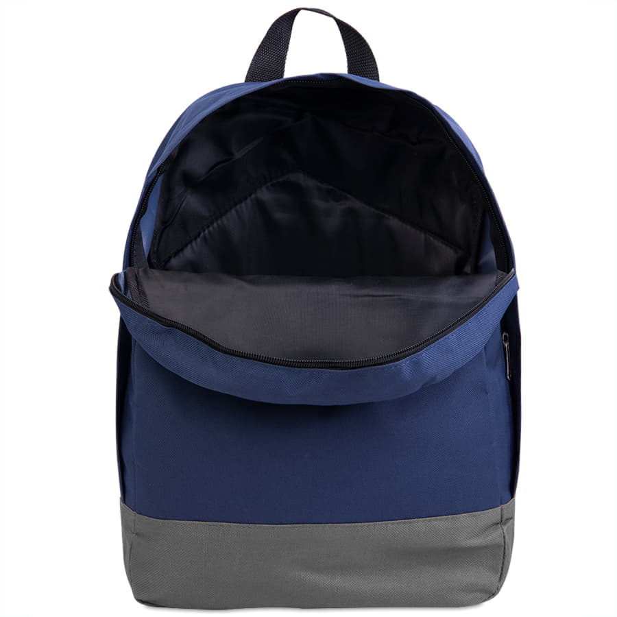Промо рюкзак из оксфорда плотностью 600D с контрастным дномЗакрытый внешний карман на молнии на передней частиОдно основное отделение на молнии с 2-мя собачкамиМягкие регулируемые лямки и усиленная спинка с поролономОбъём в районе 10 литровВыдержит вес 15 кг -
