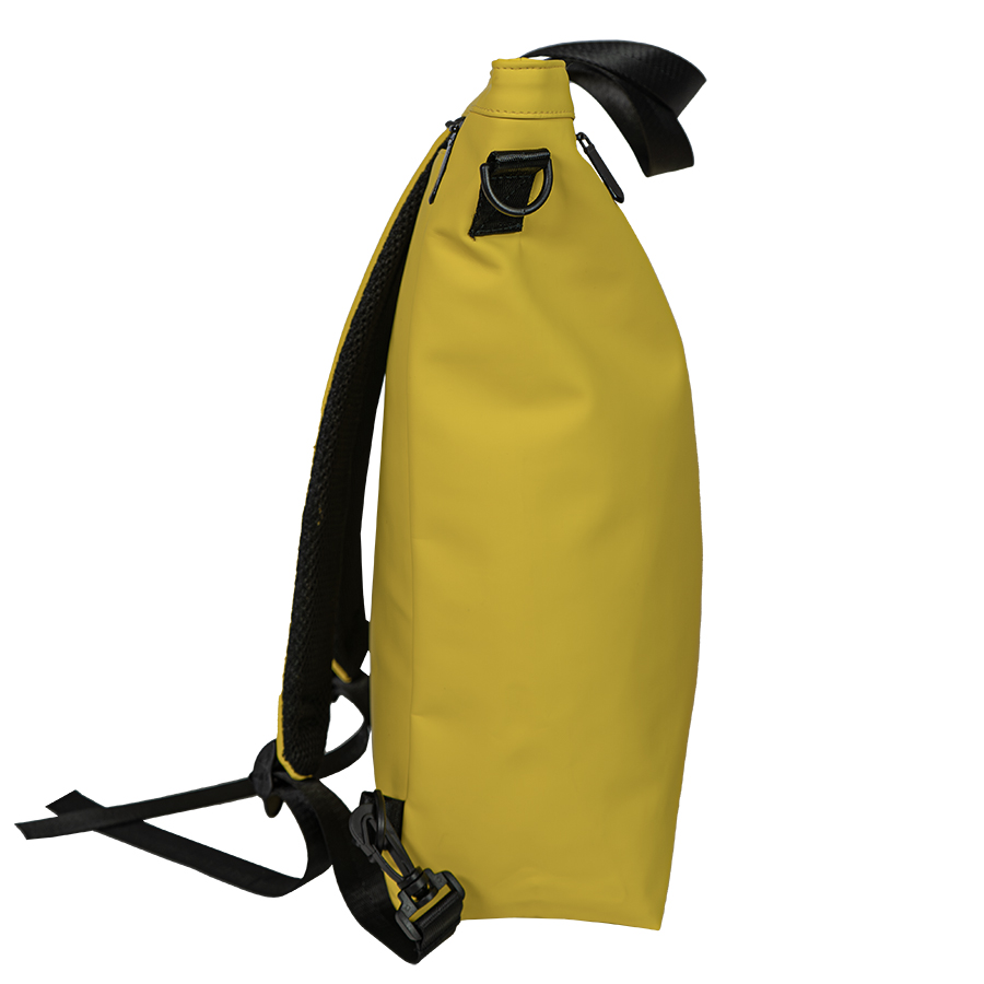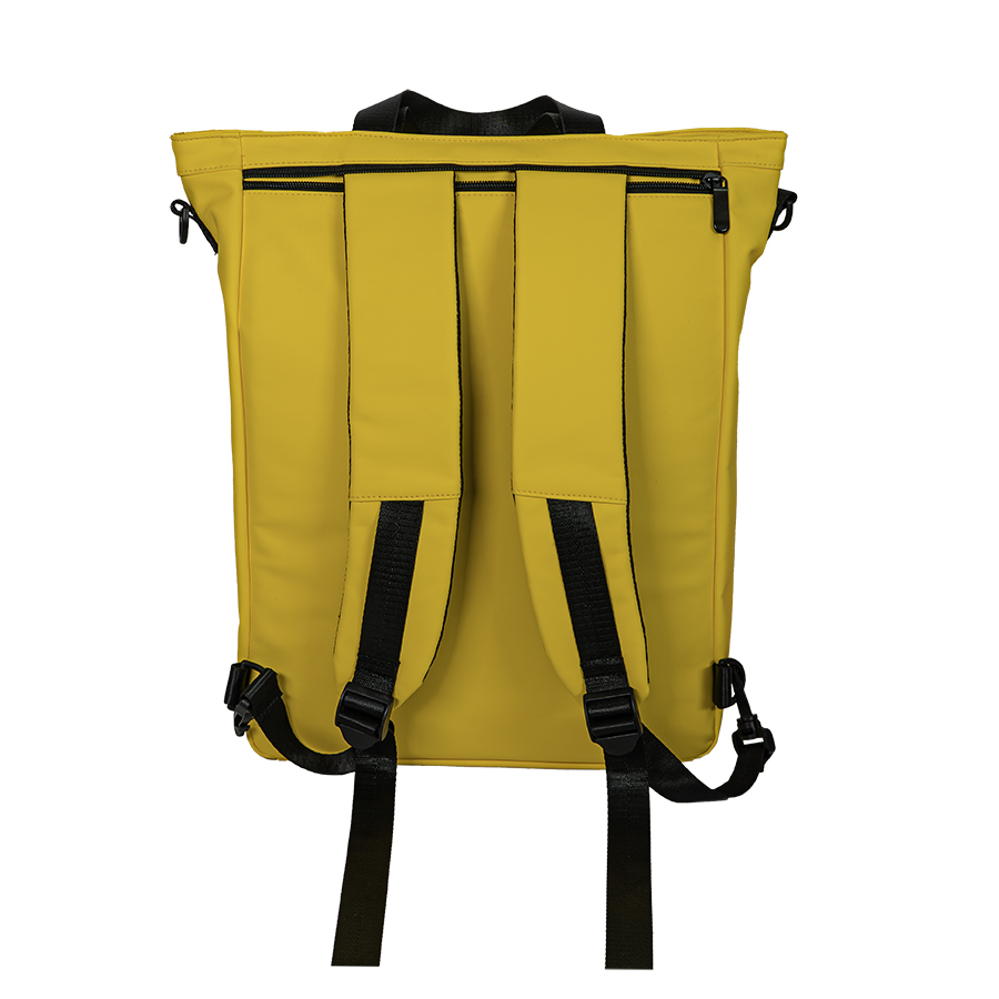 Рюкзак-сумка из 100% полиуретана. Можно использовать как сумку через плечо, можно носить как рюкзак. Лямки можно спрятать в карман. Ручка отстёгивается. Объём 15 литров. -
