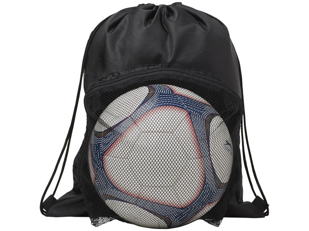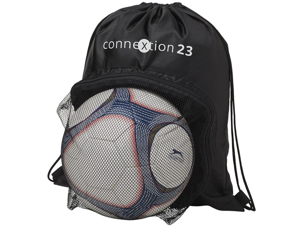 Спортивный рюкзак, стягивающийся вверху шнуром. Большое основное отделение с кулиской. Сетчатое отделение на молнии спереди для футбольного мяча. -