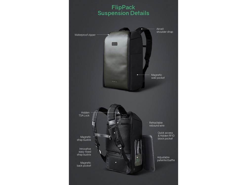 Водостойкий антикражный рюкзак FlipPack для ноутбука 15.6