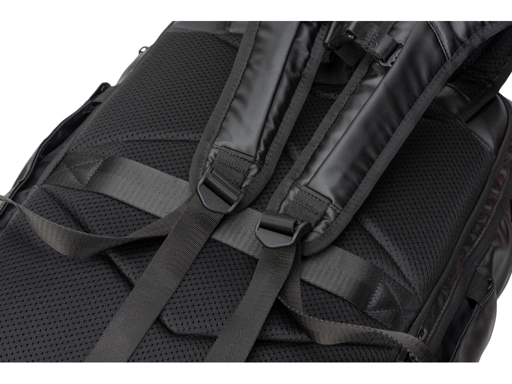 Большой вместительный рюкзак из непромокаемой ткани с водостойкими молниями снабжен множеством функций.
