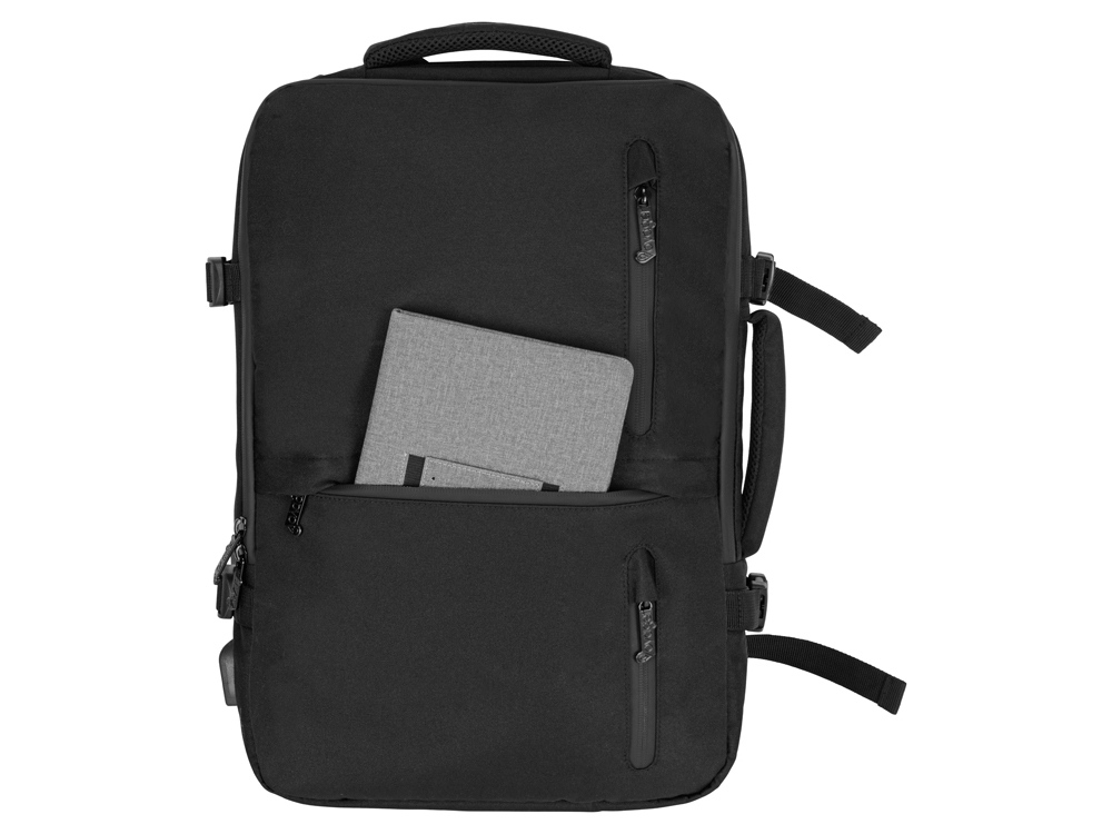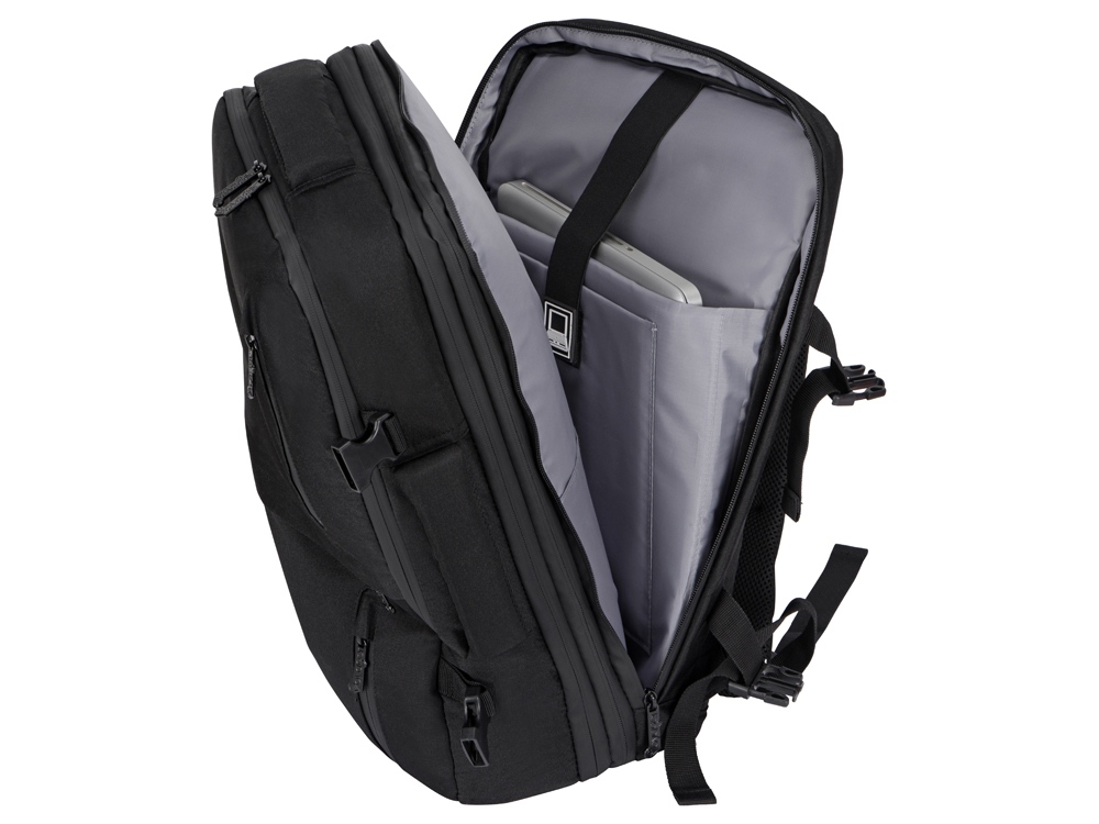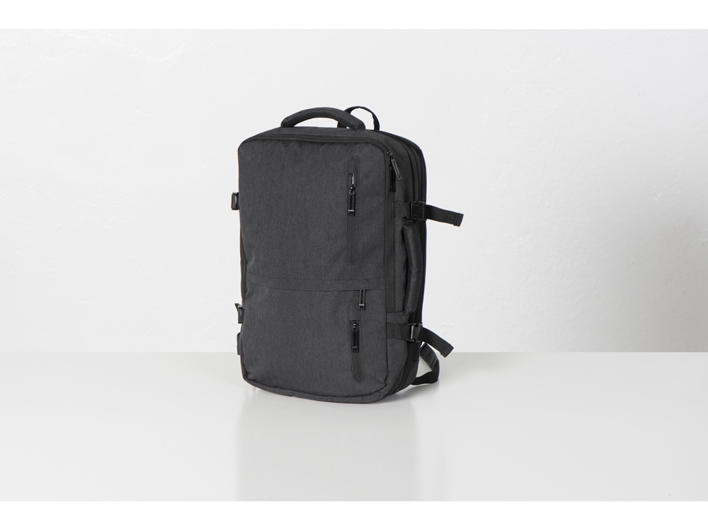 Идеальное решение для деловых поездок и путешествий в любую погоду - поместится все необходимое - от планшета и ноутбука до личных вещей и одежды. С рюкзаком можно ездить в любую погоду, потому что он изготовлен из водостойкого материала и снабжен водонепроницаемыми молниями. С помощью 4-х боковых фиксаторов вместительный рюкзак трансформируется в компактную сумку.