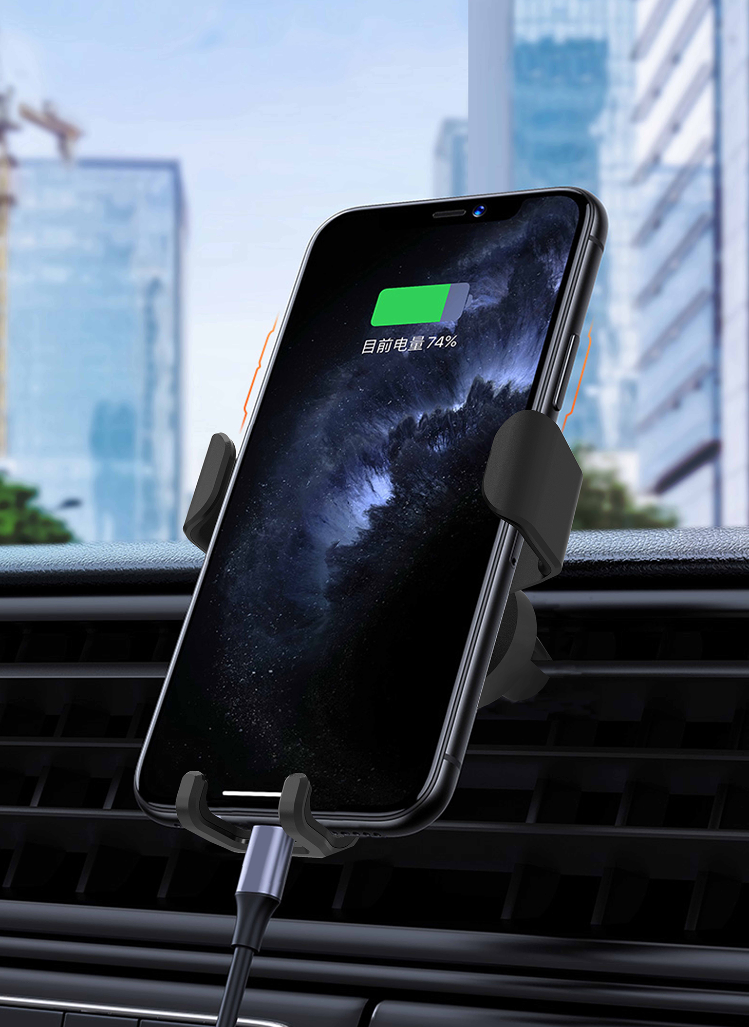 Устройство 2-в-1 – автомобильный держатель для телефона + быстрое (10W) беспроводное зарядное устройство. Гаджет выполнен в тактильно приятном покрытии soft touch. Благодаря поворотному кронштейну можно настроить необходимый угол обзора экрана смартфона. Эффектное дополнение - яркая персонализация в виде подсветки логотипа.