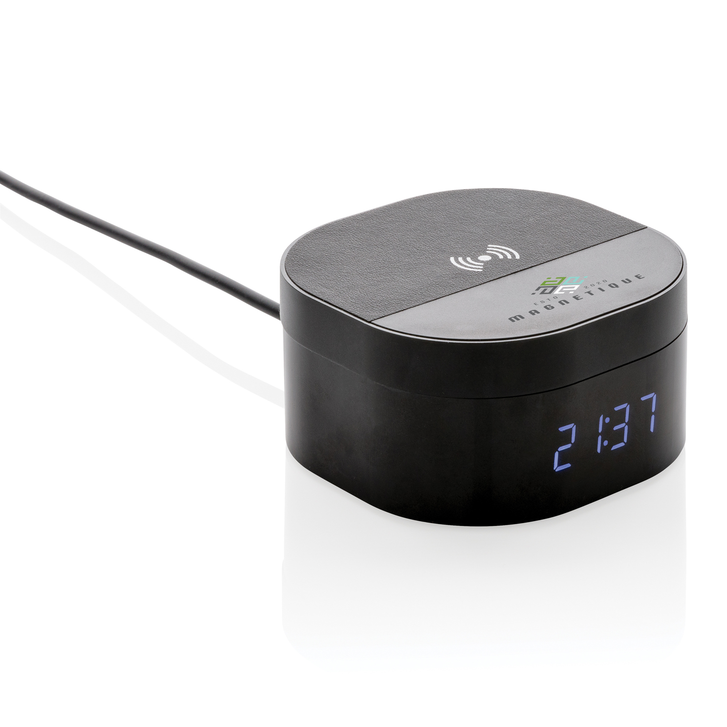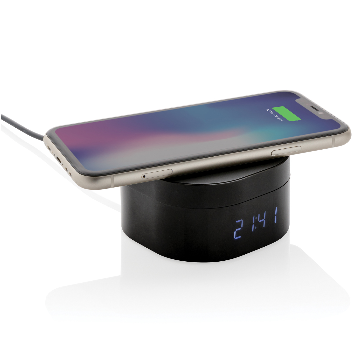 Функциональность и скандинавский стиль воплотились в нашей новой беспроводной док-станции Aria со встроенными цифровыми часами. Благодаря своему дизайну док-станция будет прекрасно смотреться как на вашем рабочем месте, так и на прикроватной тумбочке. Корпус устройства изготовлен из прочного алюминия и полиуретана. В комплекте идет Micro-USB кабель длиной 1,5 метра. Подходит для зарядки любых мобильных девайсов, поддерживающих стандарт Qi*, таких как Android последнего поколения, iPhone 8 и выше. Входное напряжение: 5V / 2A. Беспроводное выходное напряжение: 5V / 1A.