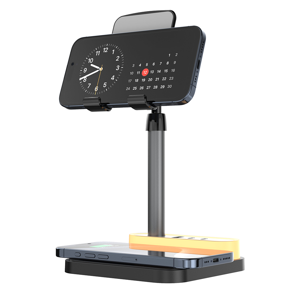 Представьте, как вы удобно устроились на кровати, поставили Stave на тумбочку и наслаждаетесь просмотром любимого фильма. Stave — ваш надежный помощник в организации пространства, как на рабочем месте, так и дома. Благодаря современному дизайну и функциональности, он идеально впишется в любую обстановку, будь то уютная комната или динамичный офис. Этот умный аксессуар предлагает: - Беспроводная зарядка 15W - Подстветка-ночник - Разъемы USB и 2 Type-C для классической проводной зарядки - Раздвигающийся по вертикали вверх-низ держатель для телефона. Такой подарок найдет себе приминение у каждого получателя. А с нанесением вашего бренда, он годами будет эффективным рекламным носителем. Входное напряжение и ток:9v-1.6A/5V-2A Выходное напряжение и ток:9v-1.6A/5V-2A Дистанция срабатывания:5-7MM LED:4W LED:Сенсор. Беспроводная зарядка поддерживает все Android/Ios устройства с функцией беспроводной зарядки. Для работы беспроводной зарядки необходимо подключать устройство к сети через адаптер.- Виды нанесений: Тампопечать большая