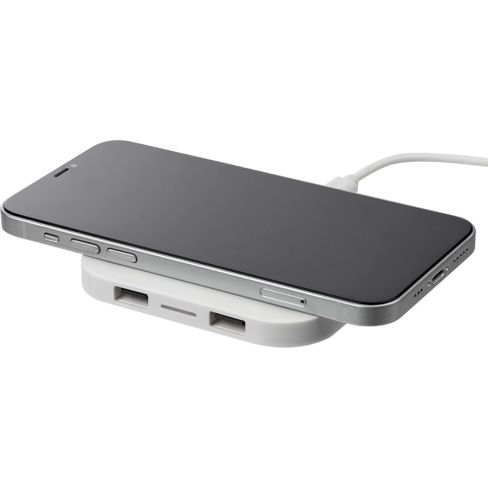 При подключении к внешнему сетевому адаптеру светодиодный индикатор мигнет два раза: устройство Interra Plus готово к размещению на верхней части корпуса смартфона с поддержкой беспроводной зарядки.- Модуль беспроводной зарядки и 2 порта USB