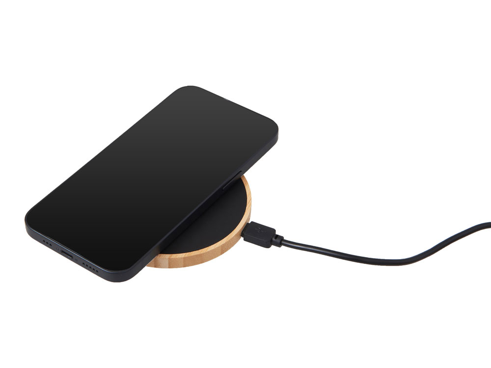 Заряжайте устройства с элегантностью и заботой о планете — с беспроводным зарядным устройством на 15 Вт, выполненным из натурального бамбука и переработанного ABS-пластика. Это не просто функциональный гаджет, а стильный элемент интерьера, который органично впишется в ваш дом, офис или коворкинг. Благодаря поддержке быстрой беспроводной зарядки до 15 Вт, ваш смартфон восполняет энергию без лишних проводов и суеты. А встроенная белая подсветка логотипа добавляет изюминку: ваш бренд или инициалы мягко светятся при зарядке, создавая атмосферу уюта и индивидуальности. Идеальный выбор для тех, кто ценит экологичность, технологии и эстетику.