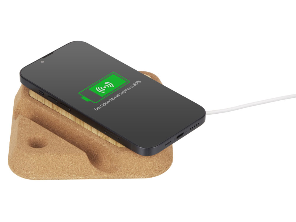 Зарядная станция поддерживает стандарт Qi, что позволяет ей работать с большинством современных смартфонов, включая iPhone и Android-устройства. Просто положите свой телефон на зарядную площадку, и он начнёт заряжаться автоматически.