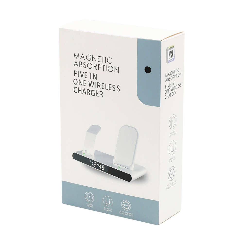 Часы электронные Abbatt мультифункциональные с беспроводной зарядкой мощностью 10W. Особенность этих электронных часов заключается в том, что они выполянют функцию не только часов и будильника, а еще с их помощью можно заряжать свои гаджеты. Удобство беспроводной зарядки говорит само за себя - очень комфортно заряжать смартфон, часы и наушники, просто положив их на зарядную станцию, не подключая при этом к ним никаких кабелей. Также есть возможность быстрой зарядки Qi. При беспроводной зарядке устройство меньше подвержено перепадам в сети, чем при подключении к розетке, тем самым увеличивается срок службы аккумулятора. Благодаря интерфейсу Type-C (шнур идёт в комплекте 1м) ваши гаджеты будут заряжаться более эффективно, а главное - одновременно. Вы можете смотреть фильмы, слушать музыку, звонить или отправлять сообщения во время всего процесса зарядки. Входы: 9V/2A 12/2A. Выходы: Беспроводной 10W / 7.5W / 5W / USB 5V / 0.8-1A / Airpod 3W / Apple watch 2.5W. Совместимость с Apple 8 и выше. Размер в упаковке: 21,5*13,5*5,5 см. Поддерживаемые устройства: 1) Область зарядки смартфона поддерживает все Android/Ios устройства с функцией беспроводной зарядки. 2) Область зарядки наушников поддерживает все Android/Ios устройства с функцией беспроводной зарядки. 3) Область зарядки часов поддерживает только устройства AppleWatch Для работы беспроводной зарядки необходимо подключать устройство к сети через адаптер.- Виды нанесений: УФ-печать А2, УФ-Лак, УФ-Цвет+Лак