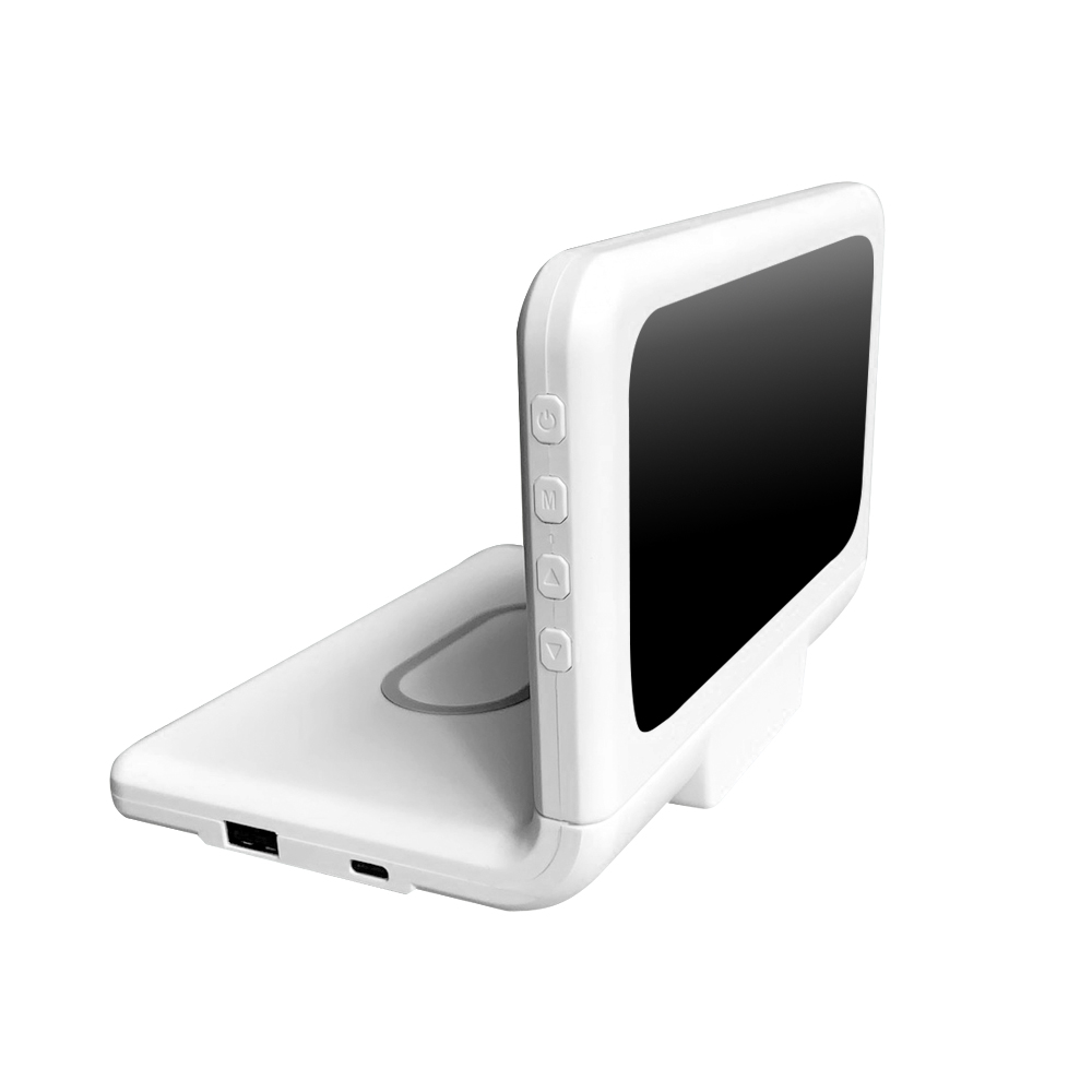 Многофункциональные электронные часы Konner с угловой формой,выдержанным дизайном LED экрана и удобной площадкой для беспроводной зарядки мощностью 10W. Функции: Время / Температура / Будильник / Беспроводная зарядка Qi. Для работы беспроводной зарядки необходимо подключать устройство к сети через адаптер.- Виды нанесений: УФ-печать А2, Тампопечать большая, УФ-Лак, УФ-Цвет+Лак