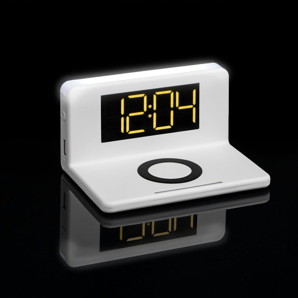 Часы настольные с беспроводным зарядным устройством Pitstop, белые