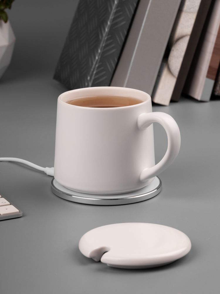 Многофункциональная подставка в комплекте со специальной чашкой не даст напитку остыть и будет поддерживать оптимальную для комфортного и безопасного питья температуру — на уровне 55 °C.