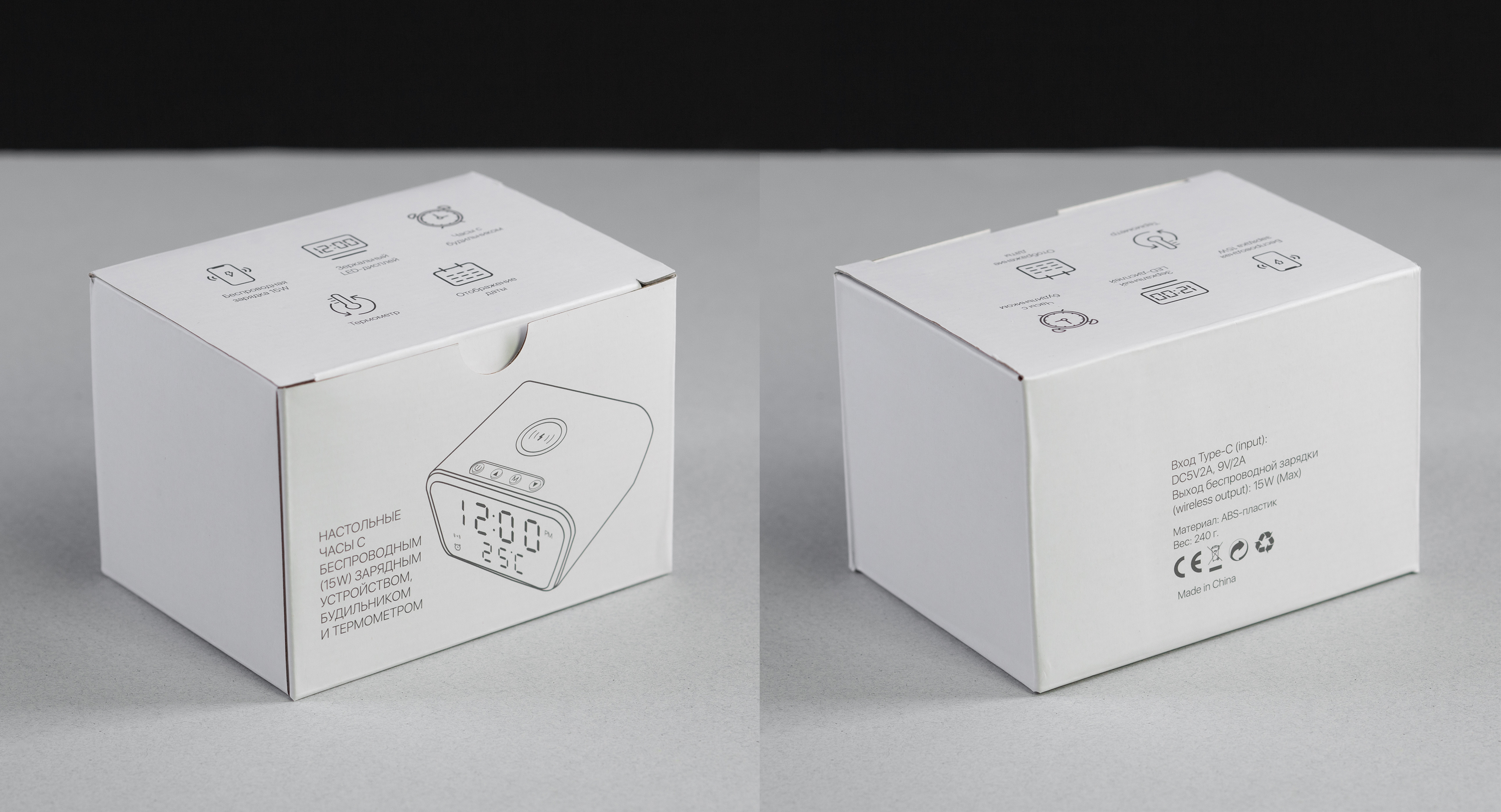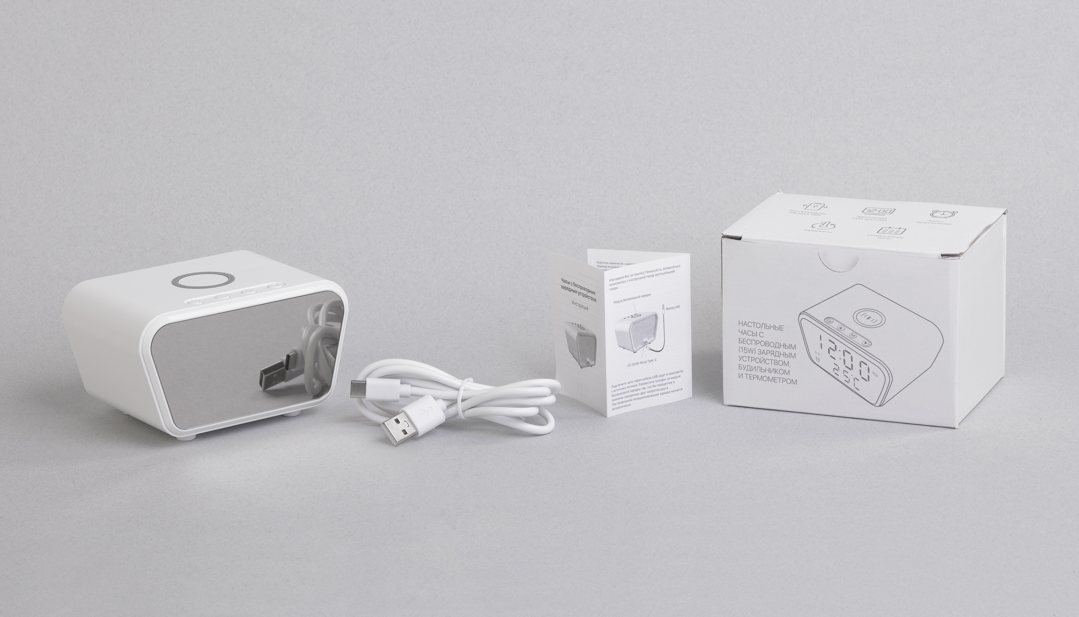 Настольные часы "Smart Clock" с беспроводным (15W) зарядным устройством, будильником и термометром