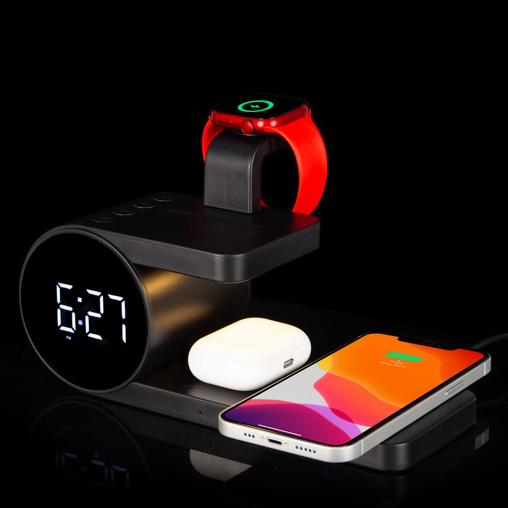 Станция беспроводной зарядки с часами fullStack, черная