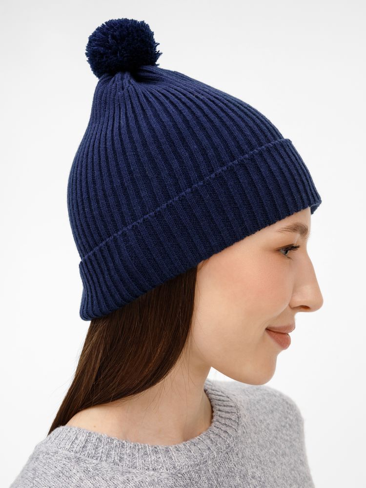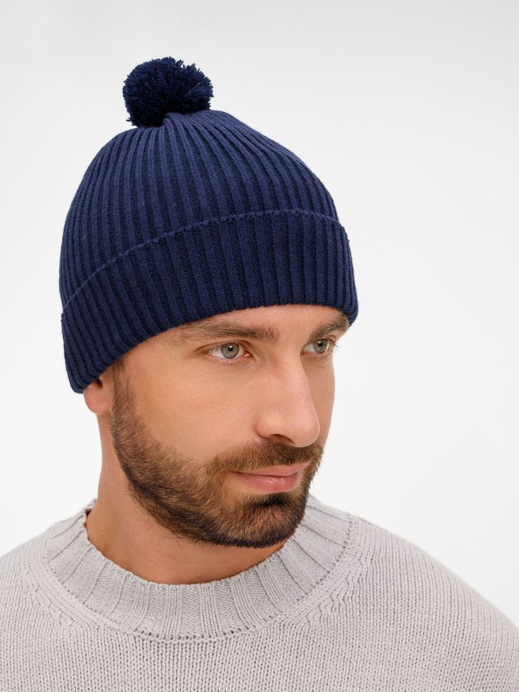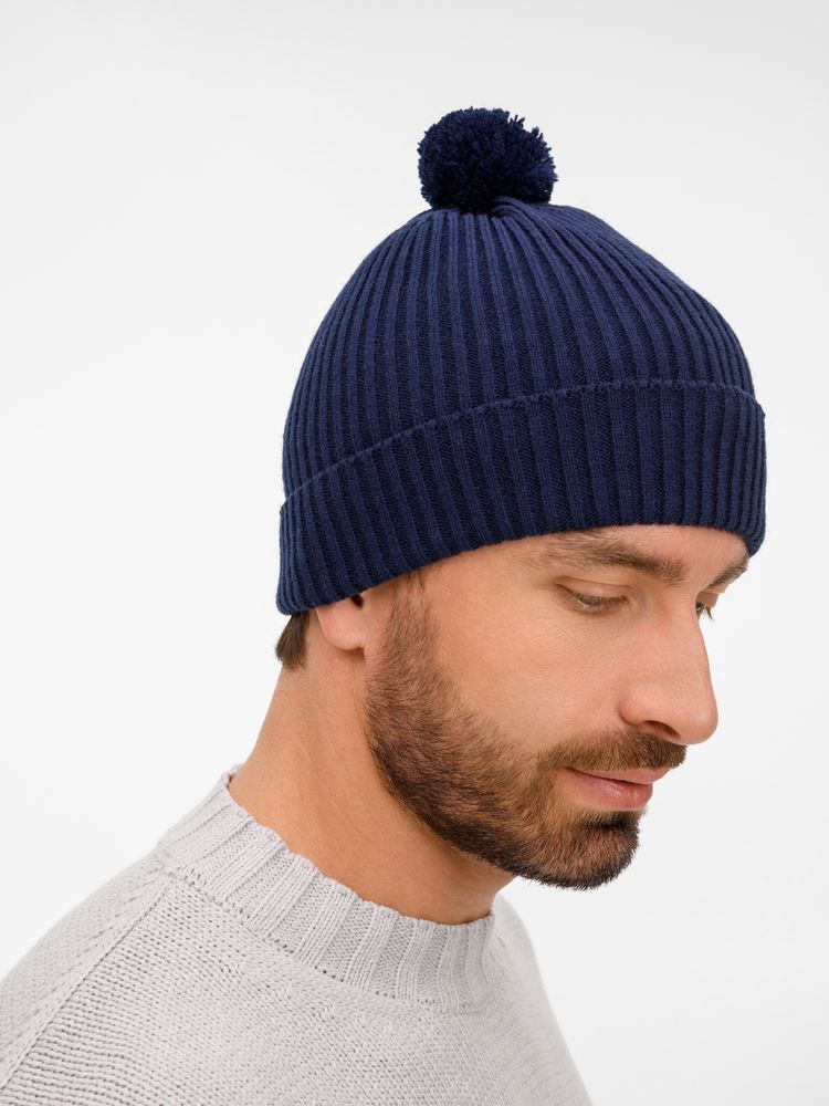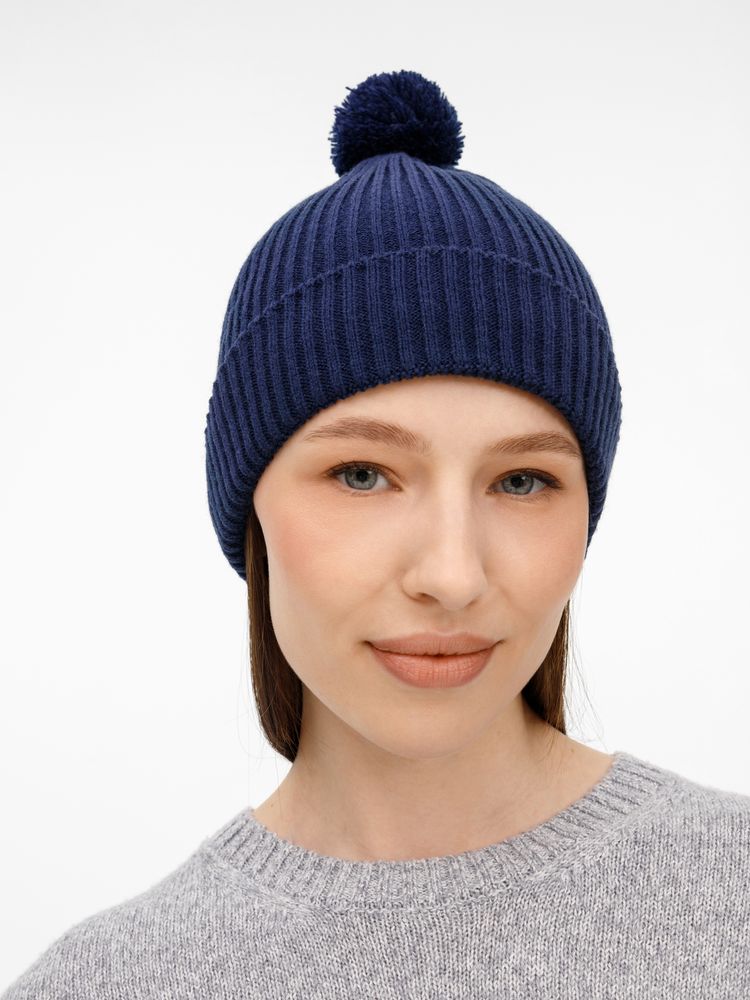 Шапка Catch Match с помпоном, темно-синяя
