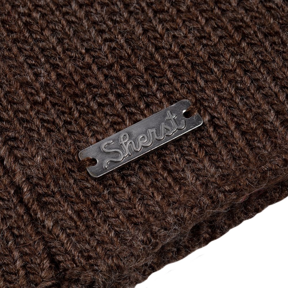 Металлический шильд с названием бренда расположен у заднего шва шапки. Это оставляет место спереди для пришива лейбла или шильдика с логотипом заказчика. -