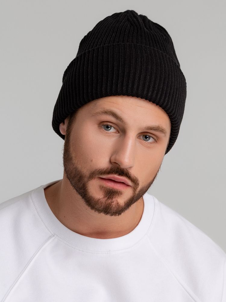 Двухслойная шапка фактурной вязки с отворотом.