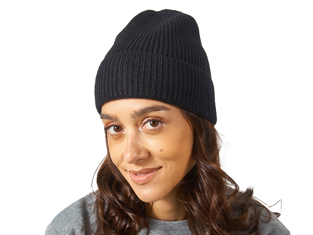 Вязаная шапка из мягкого трикотажа в рубчик. Шапка связана рибом 1х1. -