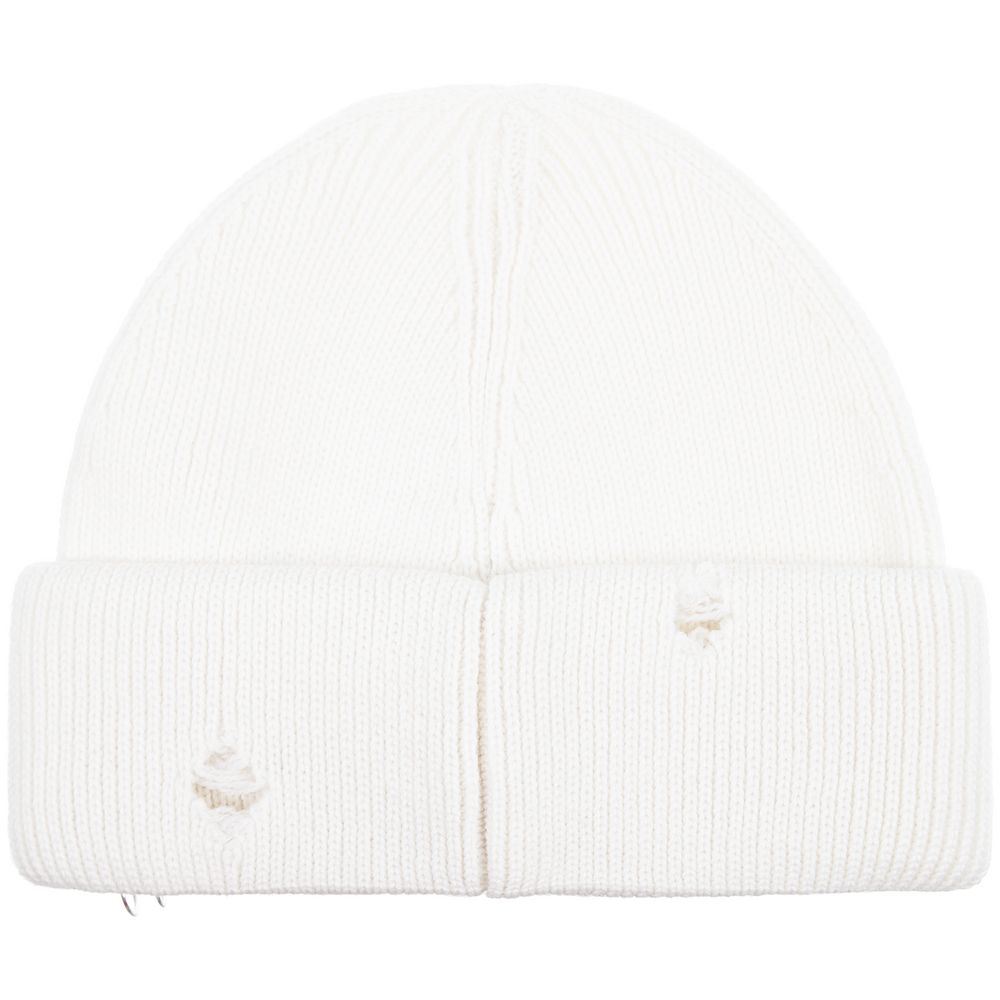 Однослойная шапка бини с рваным отворотом и металлическими аксессуарами для дерзких образов в любом возрасте. Яркий и запоминающийся акцент в стиле гранж.