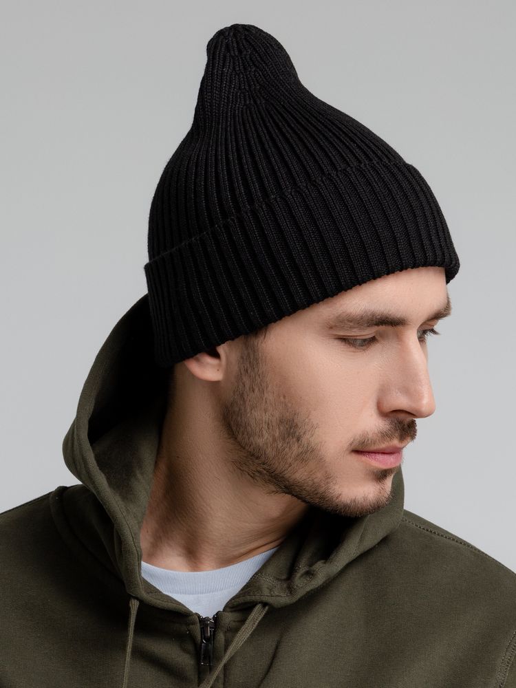 Металлический шильд с названием бренда расположен у заднего шва шапки. Это оставляет место спереди для пришива лейбла или шильдика с логотипом заказчика. -
