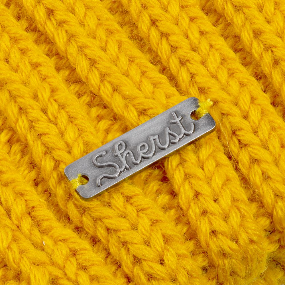 Металлический шильд с названием бренда расположен у заднего шва шапки. Это оставляет место спереди для пришива лейбла или шильдика с логотипом заказчика. -