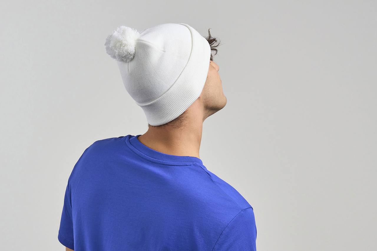 Шапка вязаная двойная Wind-S c помпоном