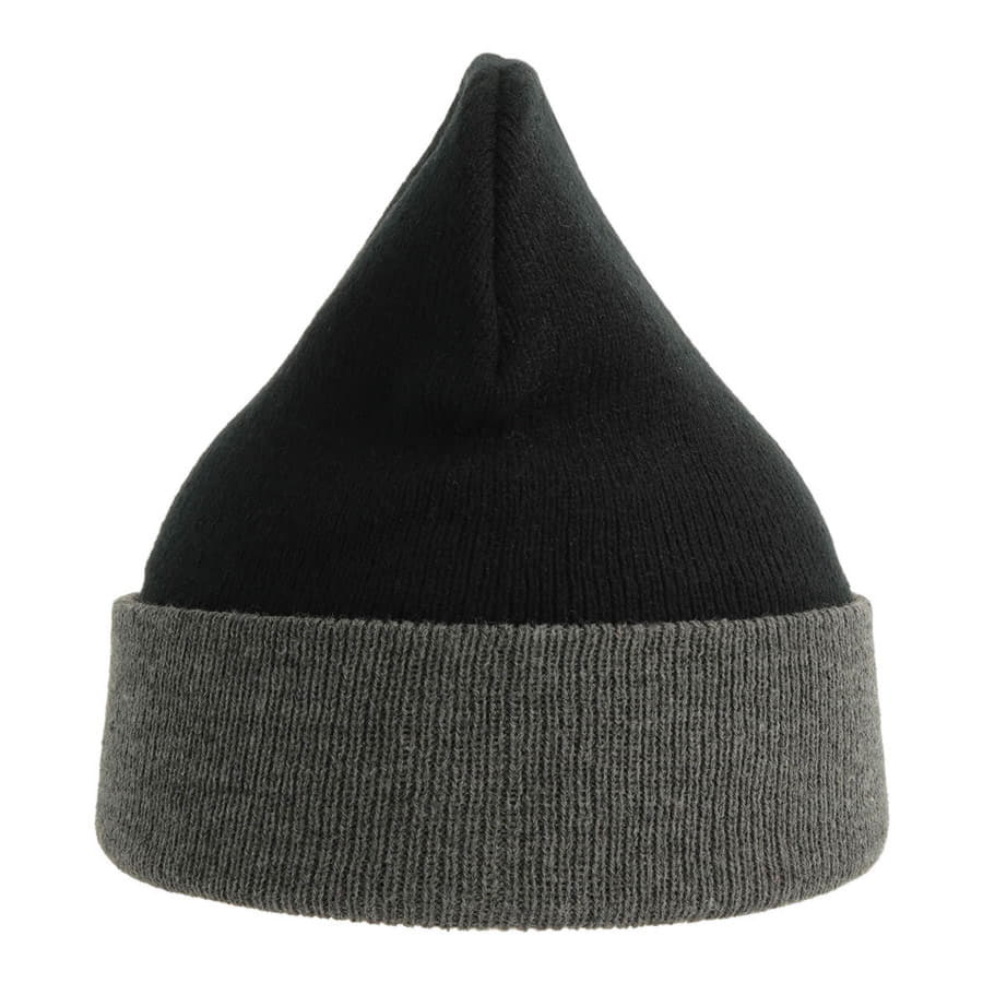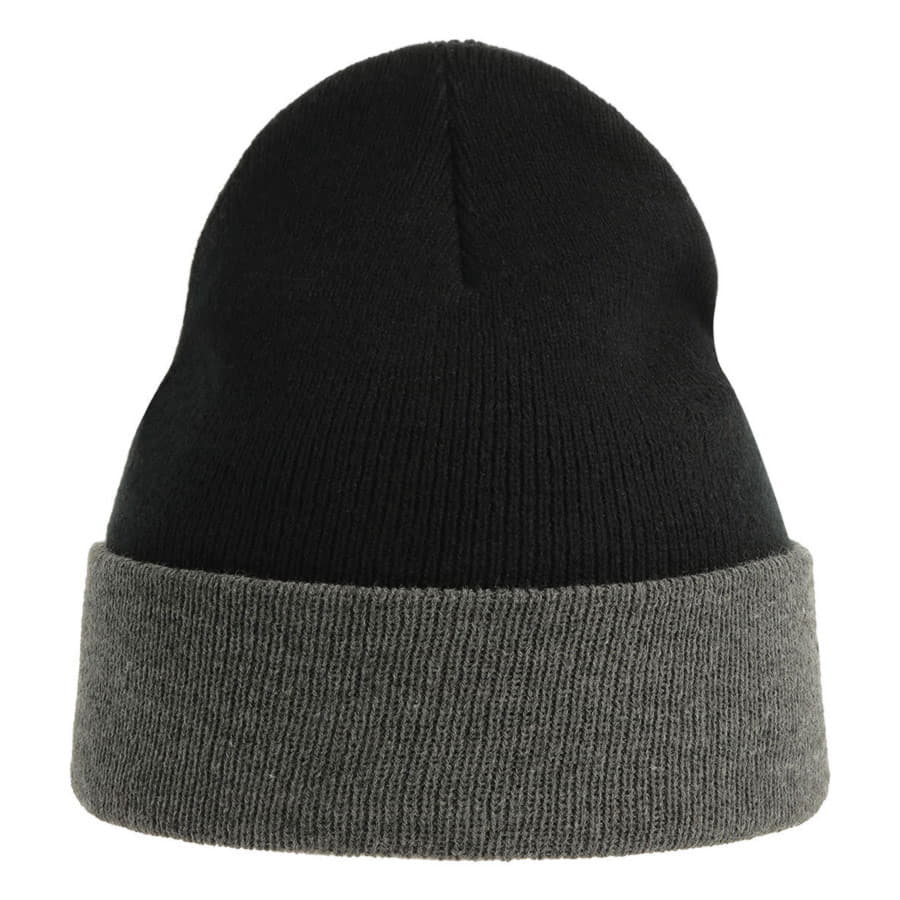 Шапка классической формы, идеально подходящая как для промоакций, так и для спортивных мероприятий. Высота шапки - около 22 см, ширина отворота - 7 см.Класс вязки - 10, риб 1х1. Цвет, близкий к Pantone Black 6 C, отворот: цвет, близкий к Pantone Cool Grey 11C -