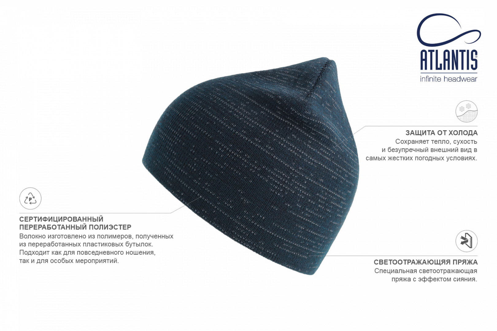 Шапка вязаная SHINE светоотражающая из материала rPET/рециклированного полиэстера