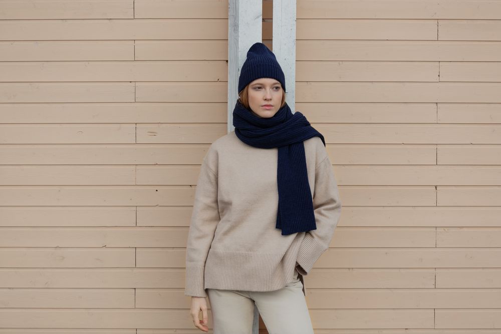 Шарф в рубчик Alpine из воздушной пряжи с высоким содержанием шерсти альпака и мериноса позволит создать актуальный сдержанный образ в стиле smart casual.