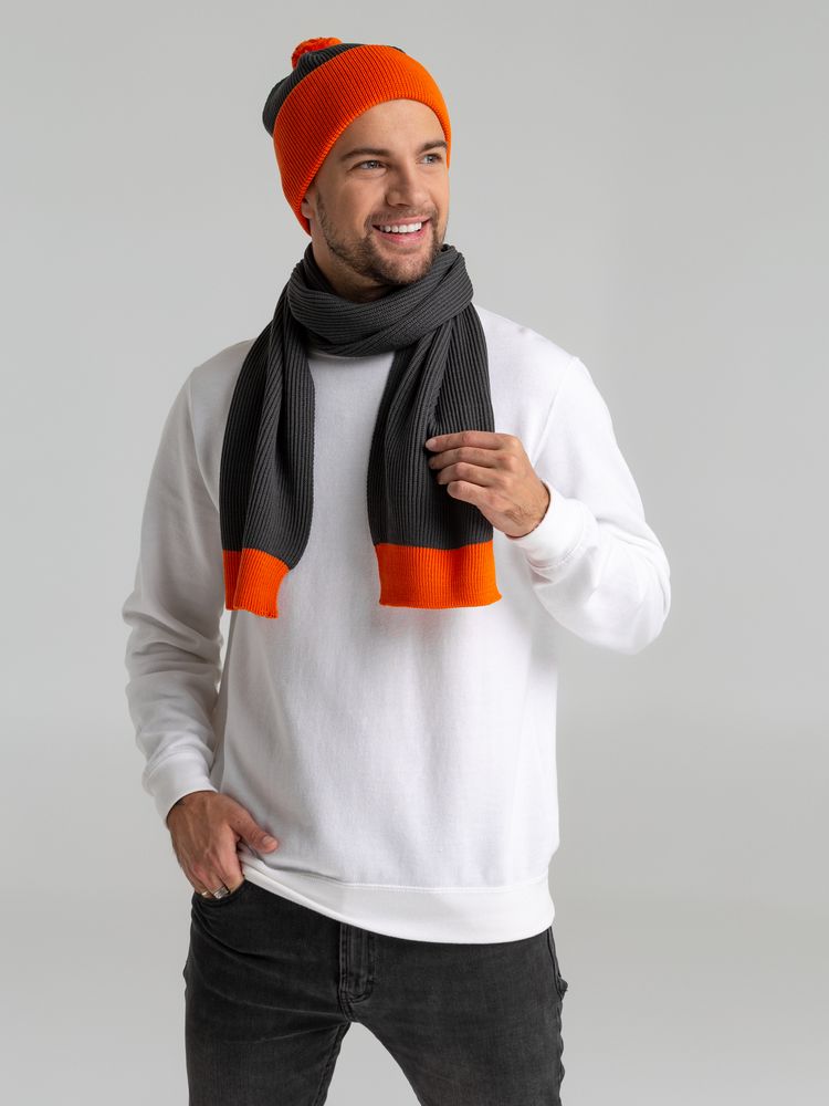 Шарф Snappy, темно-серый с оранжевым