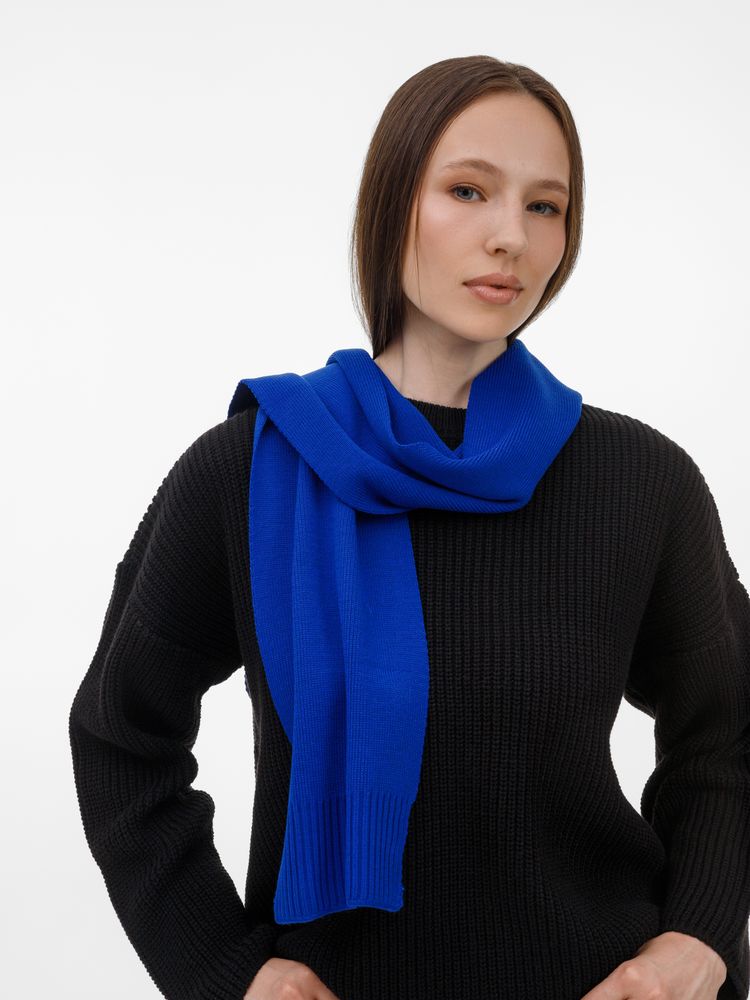 Классический однослойный шарф гладкой вязки. Края, связанные резинкой, придают изделию завершенный и аккуратный вид.