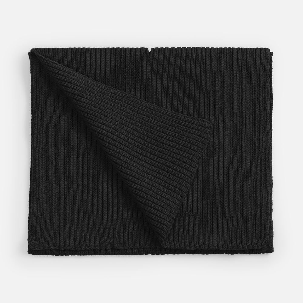 Однослойный шарф фактурной вязки с отверстием для быстрого и удобного завязывания.