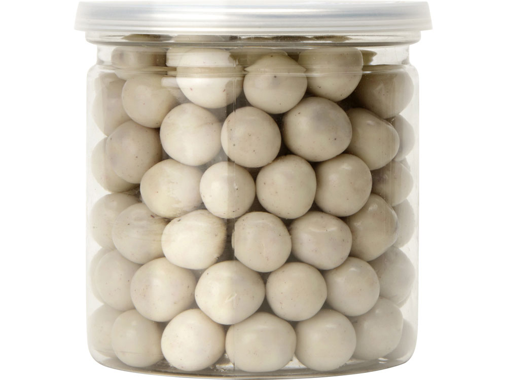 Состав: йогуртовая глазурь (сахар, молоко сухое обезжиренное, какао-масло, сыворотка молочная сухая, йогуртовый порошок натуральный (молоко обезжиренное питьевое пастеризованное, мальтодекстрин, молочная кислота), эмульгатор лецитин, сублимат черники.